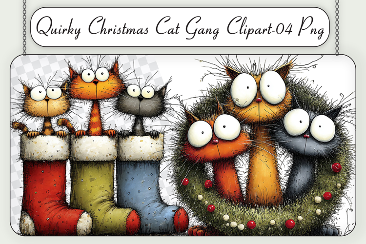 Quirky Christmas Cat Gang Clipart Sublimation