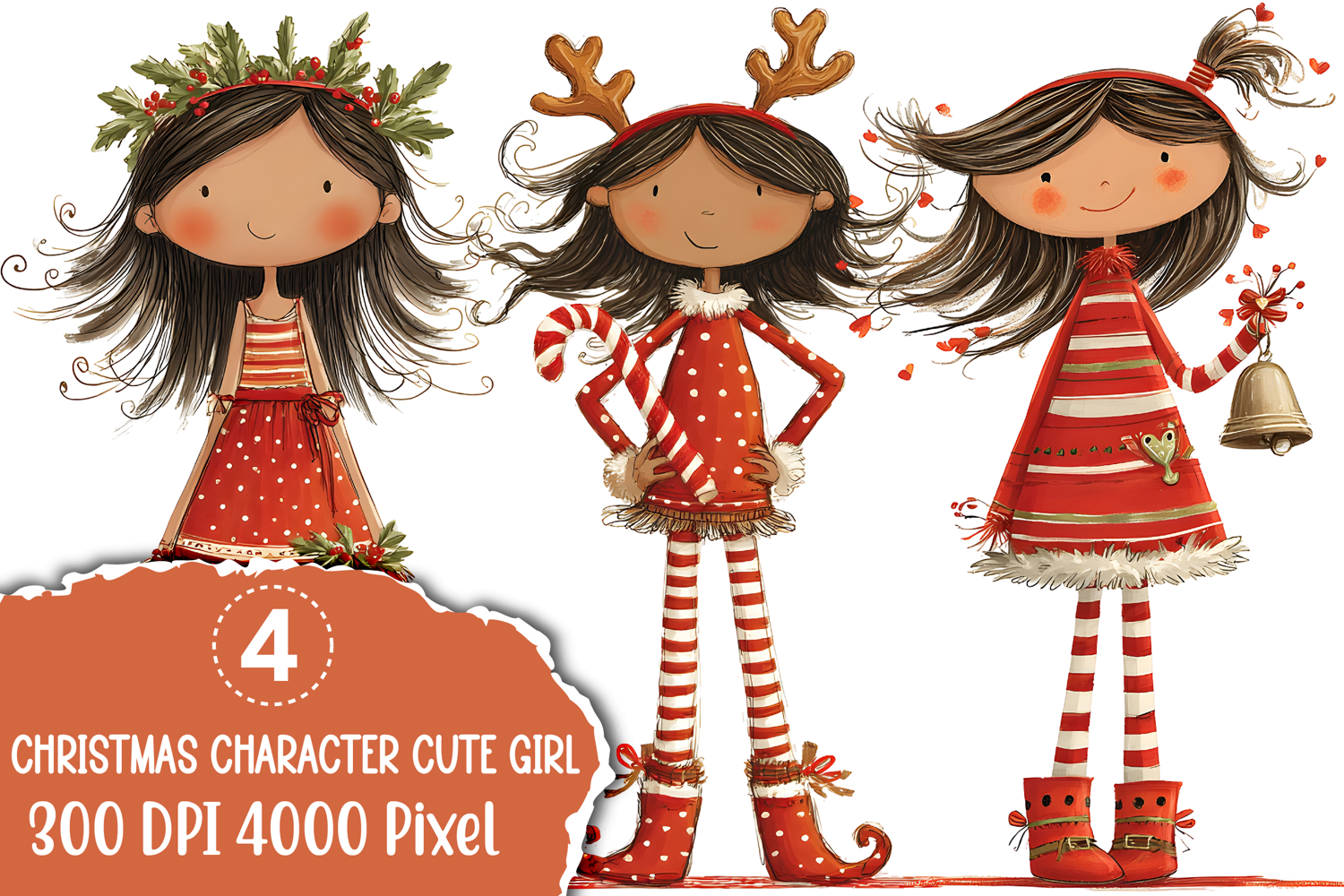 Christmas Clipart Christmas Illustrations Animals Clipart Clipart Png Christmas Sublimation Whimsical Christmas Sublimation Design Quirky Clipart Quirky Christmas Clipart Christmas Character Cute Girl Sublimation