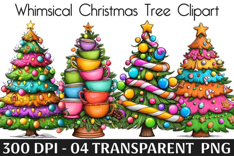 Whimsical Christmas Tree Clipart Sublimation example image 1