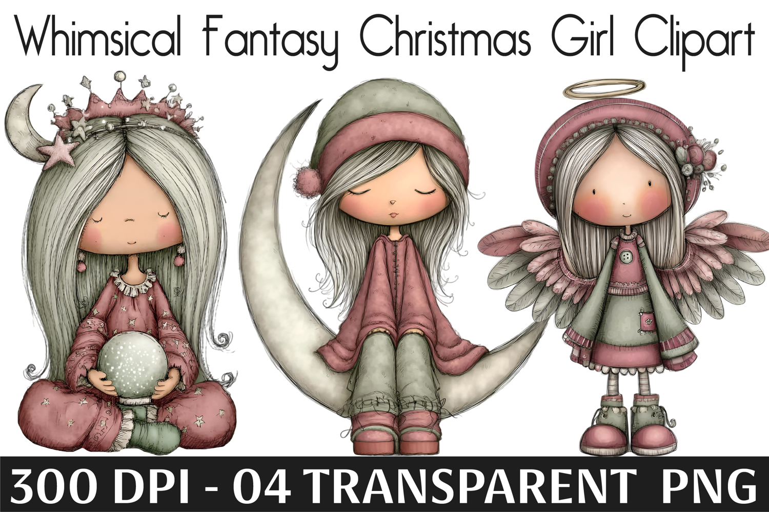 Similar Design Products to Whimsical Fantasy Christmas Girl Clipart