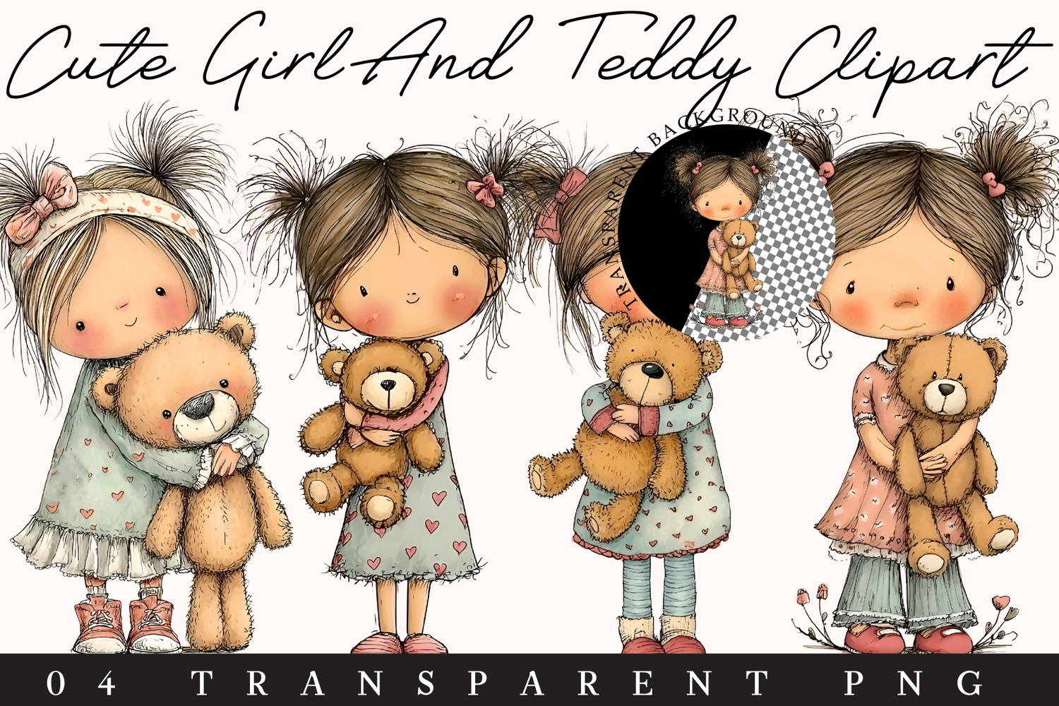 Cute Girl And Teddy Clipart Sublimation example image 1