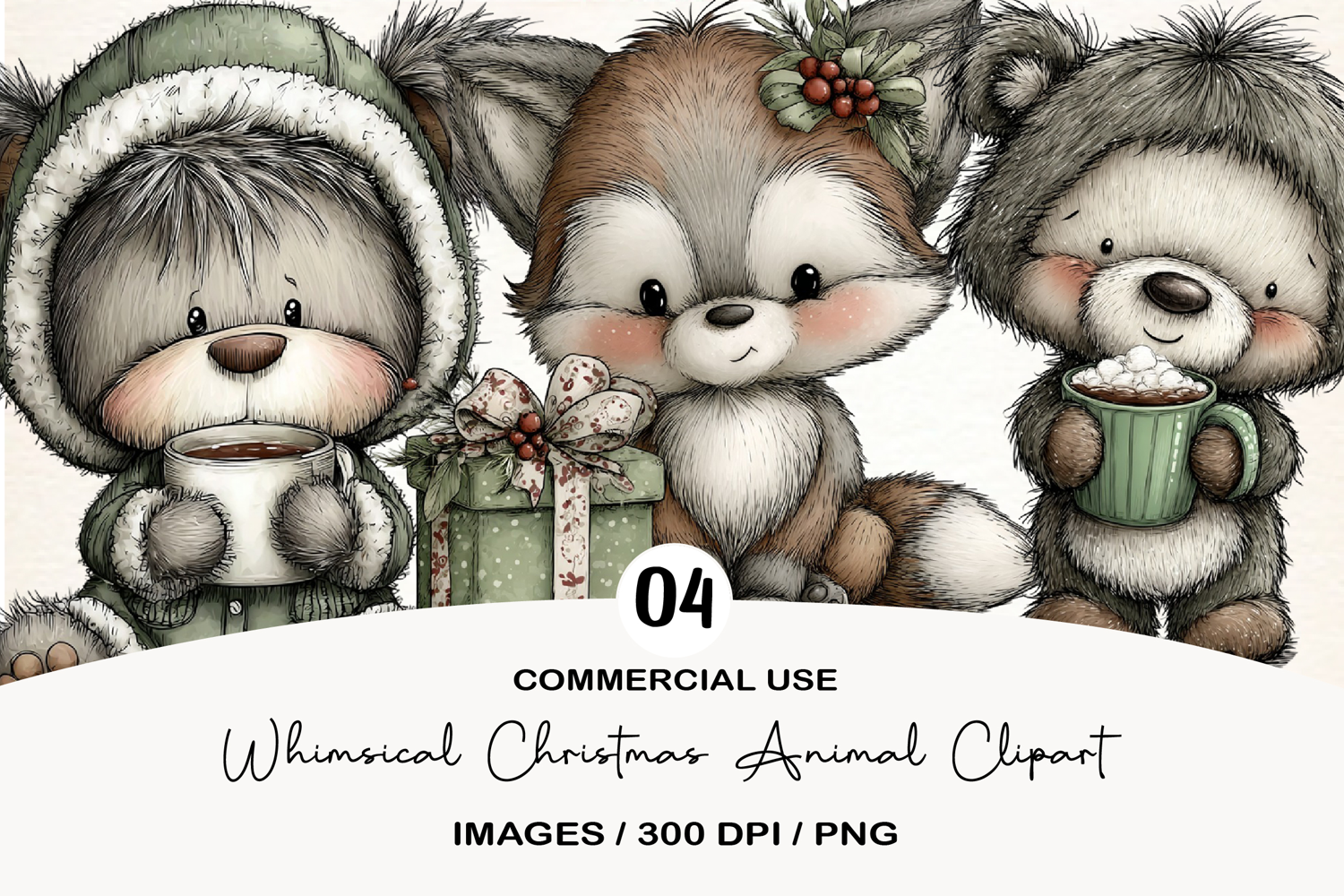 Similar Design Products to Whimsical Christmas Animal Clipart