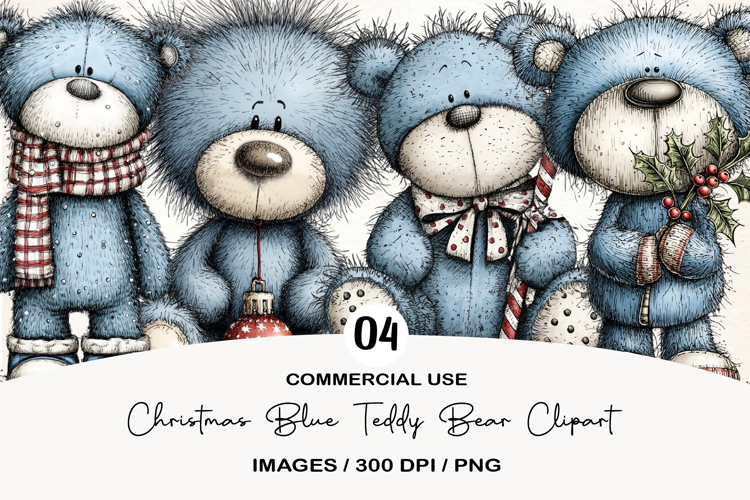 Whimsical Christmas Blue Teddy Bear example image 1