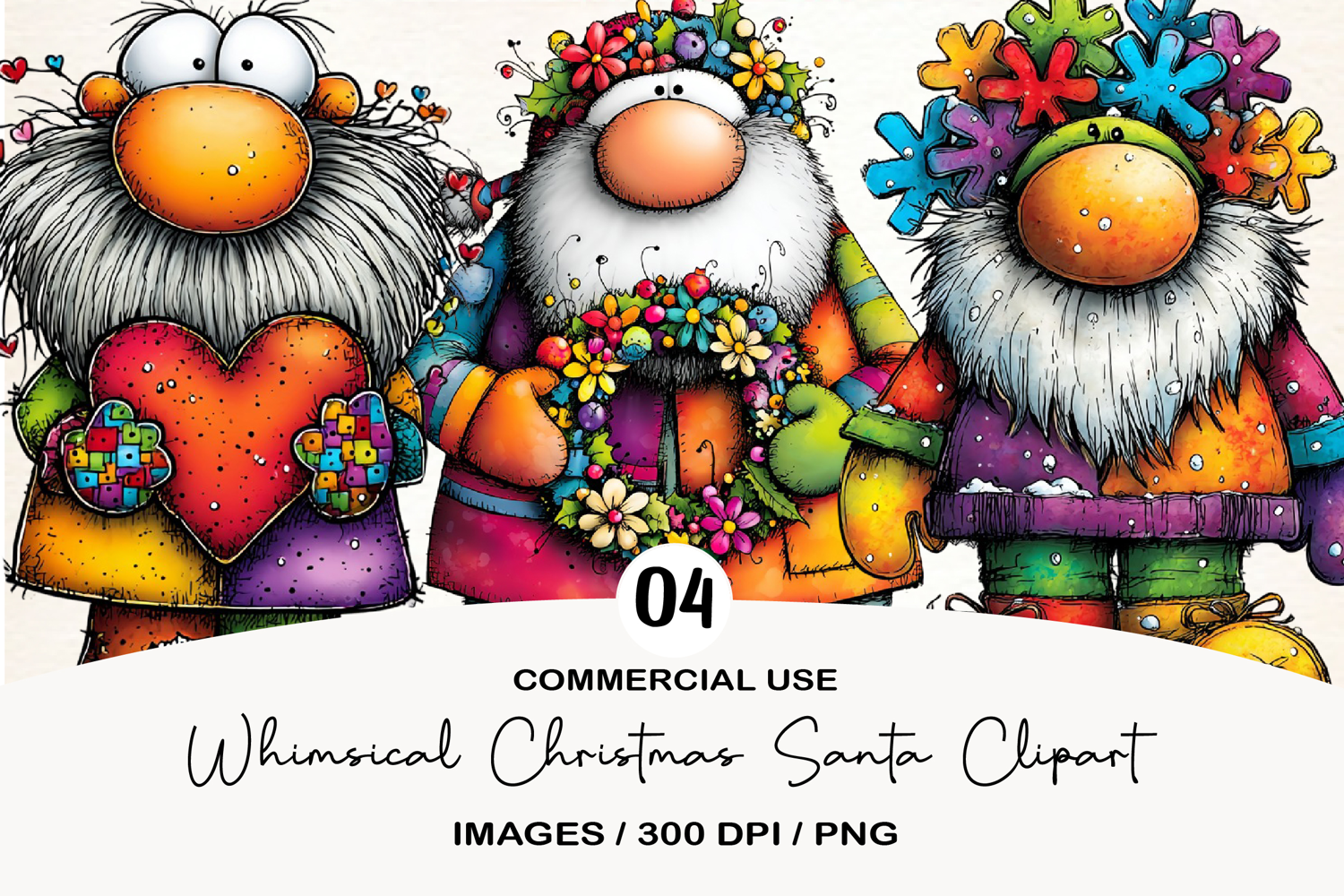 Whimsical Christmas Santa Clipart example image 1