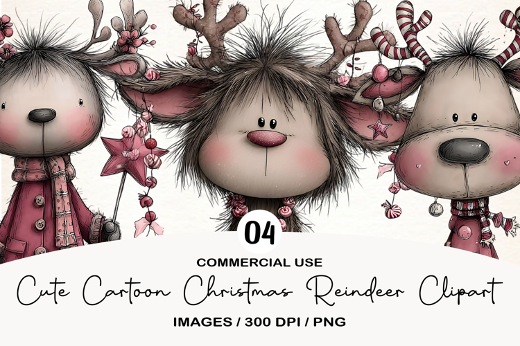 Cute Cartoon Christmas Reindeer Clipart example image 1