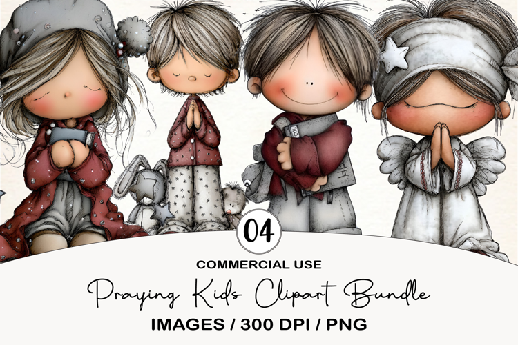 Praying Kids Clipart Sublimation example image 1