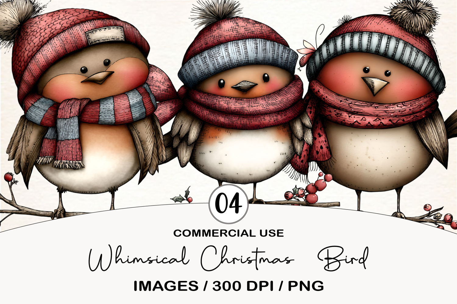 Whimsical Christmas Bird Clipart Sublimation example image 1