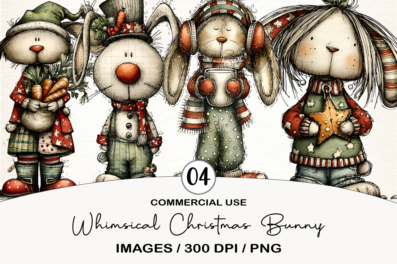 Similar Design Products to Whimsical Christmas Bunny Clipart