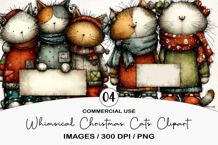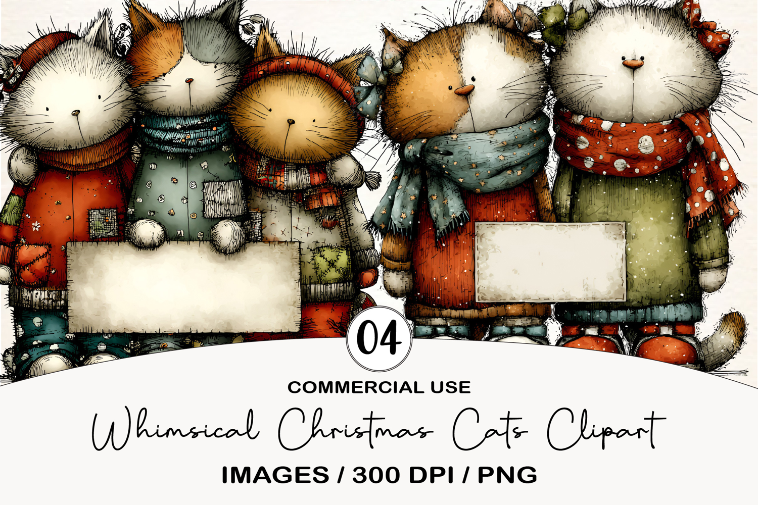 Similar Design Products to Whimsical Christmas Cats Clipart