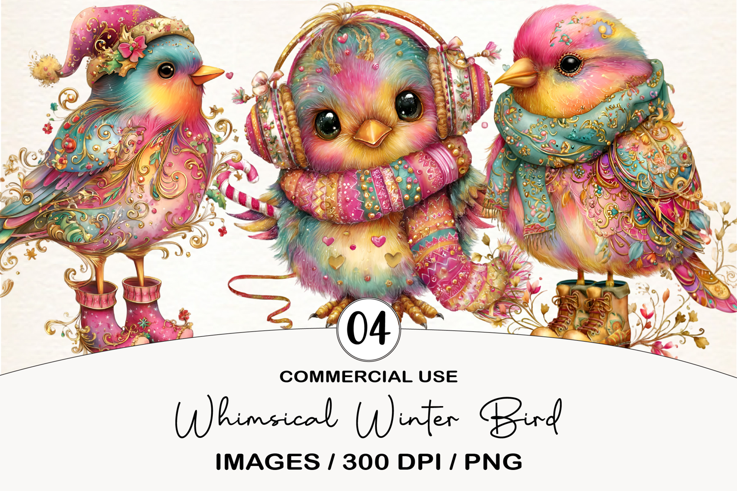 Whimsical Winter Bird Clipart Sublimation example image 1