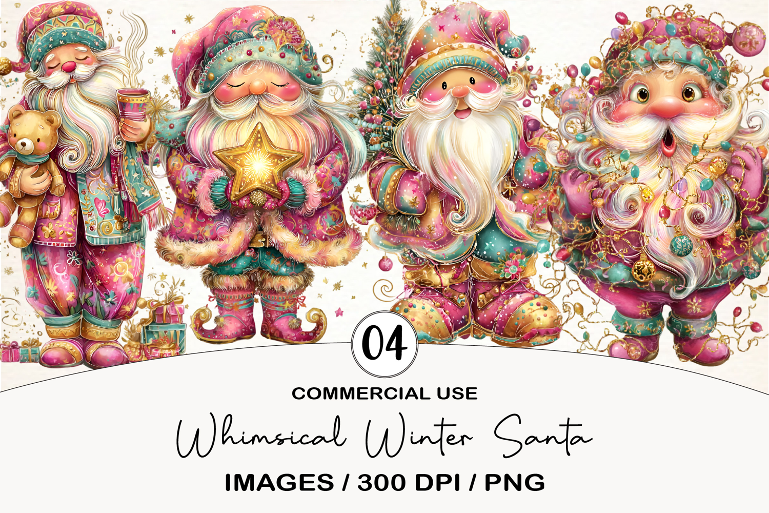Whimsical Winter Santa Clipart example image 1