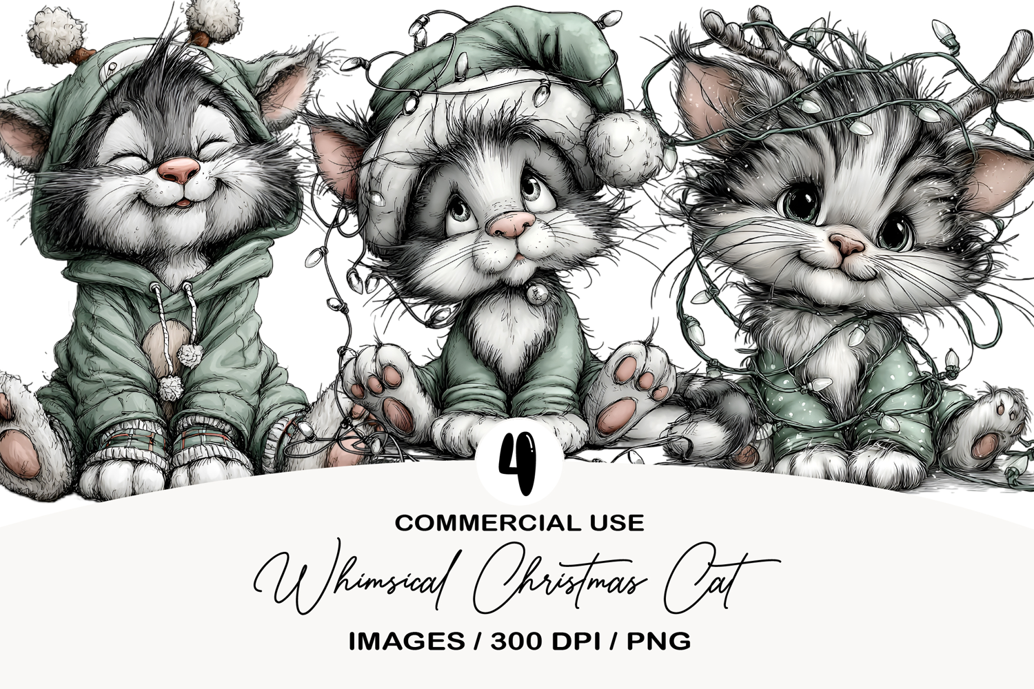 Similar Design Products to Whimsical Christmas Cat Clipart