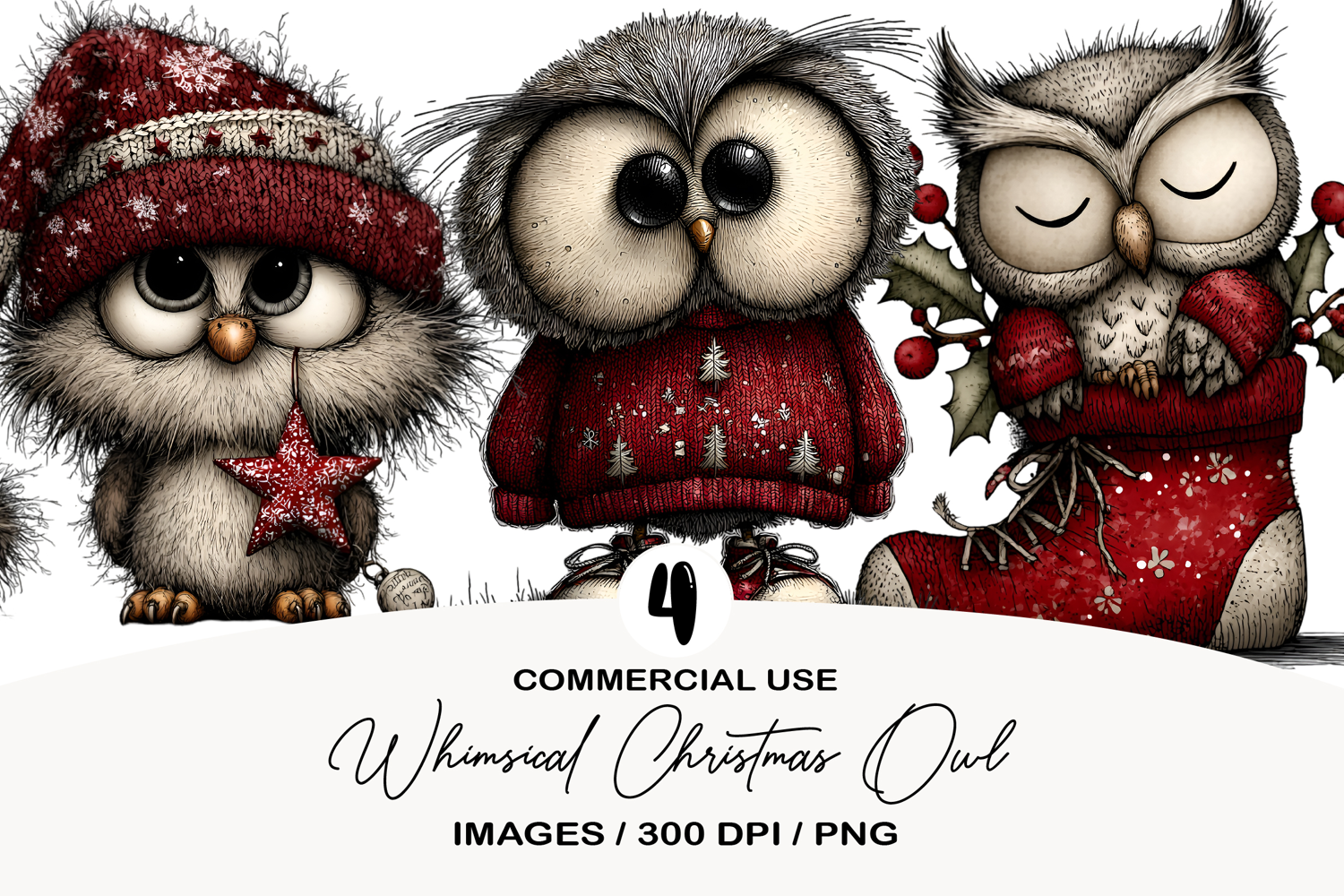 Similar Design Products to Whimsical Christmas Owl Clipart