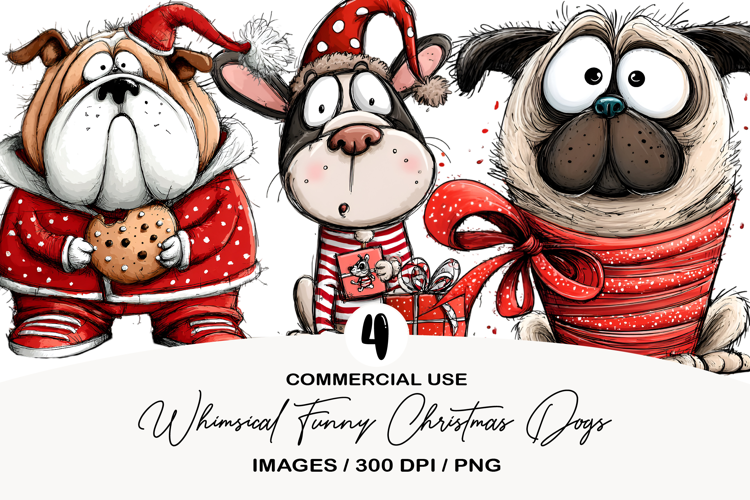 Whimsical Funny Puppy Christmas Dogs Clipart example image 1