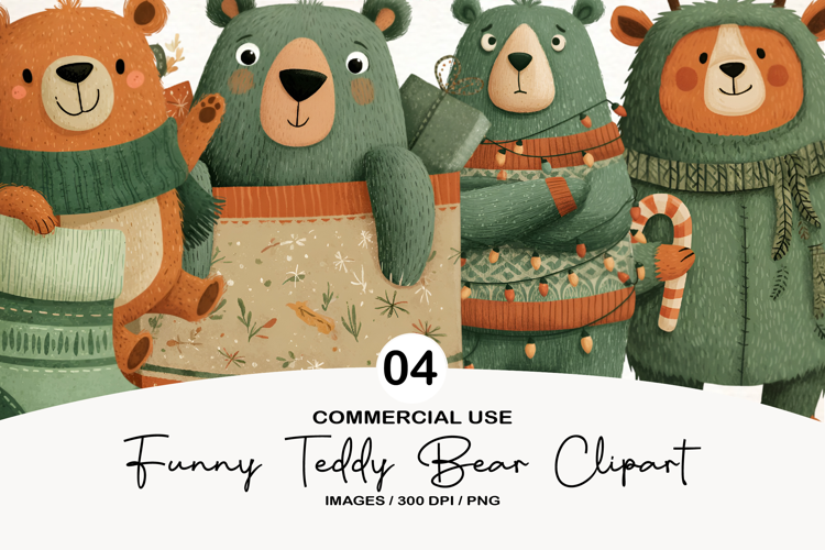 Funny Christmas Teddy Bear Clipart example image 1