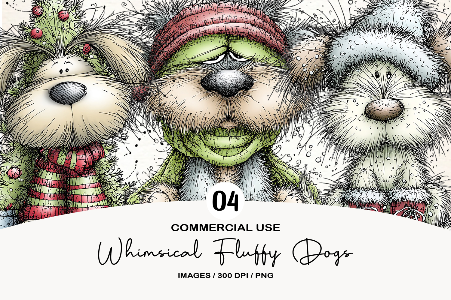 Similar Design Products to Whimsical Christmas Fluffy Dogs Clipart