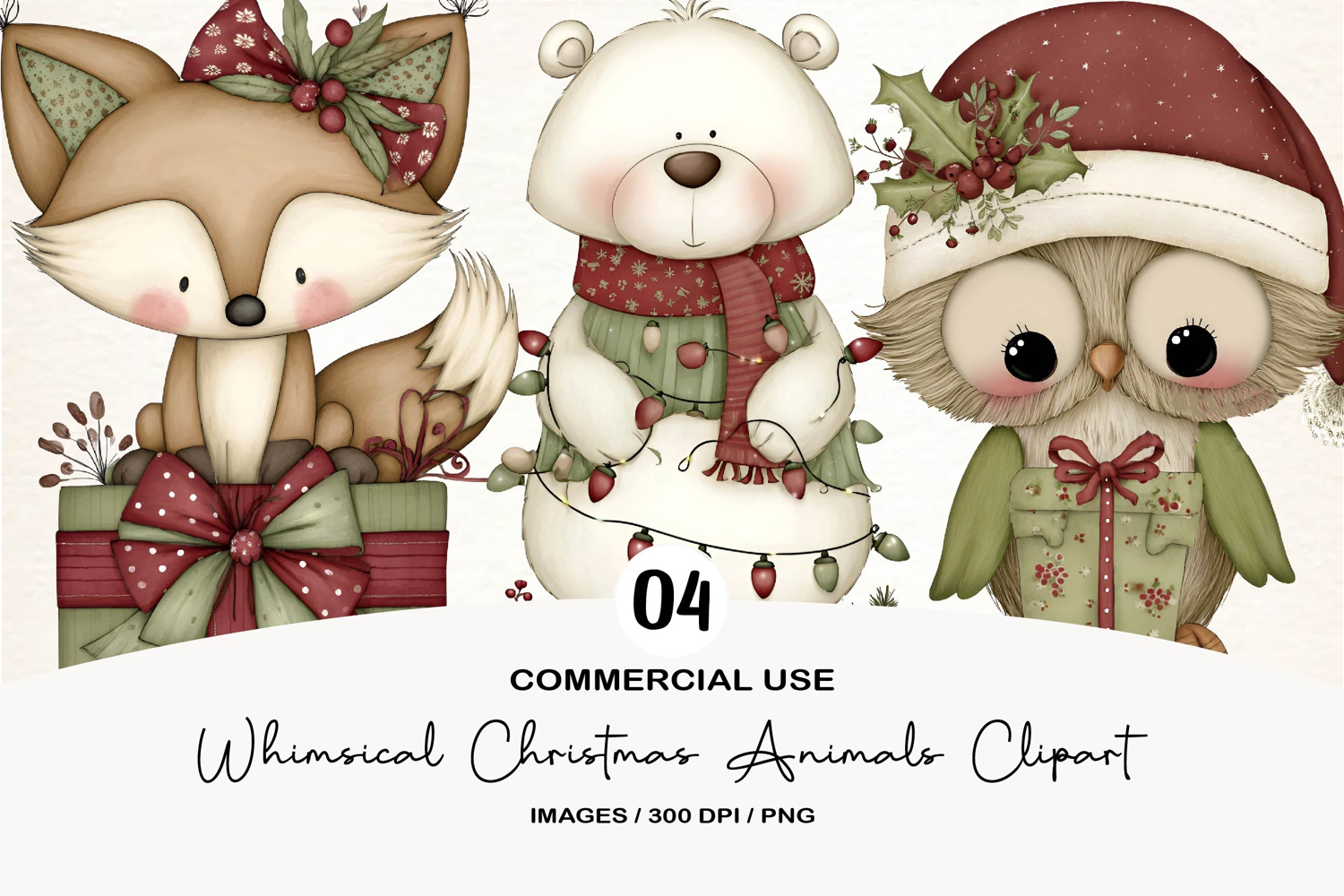 Whimsical Christmas Animals Clipart example image 1