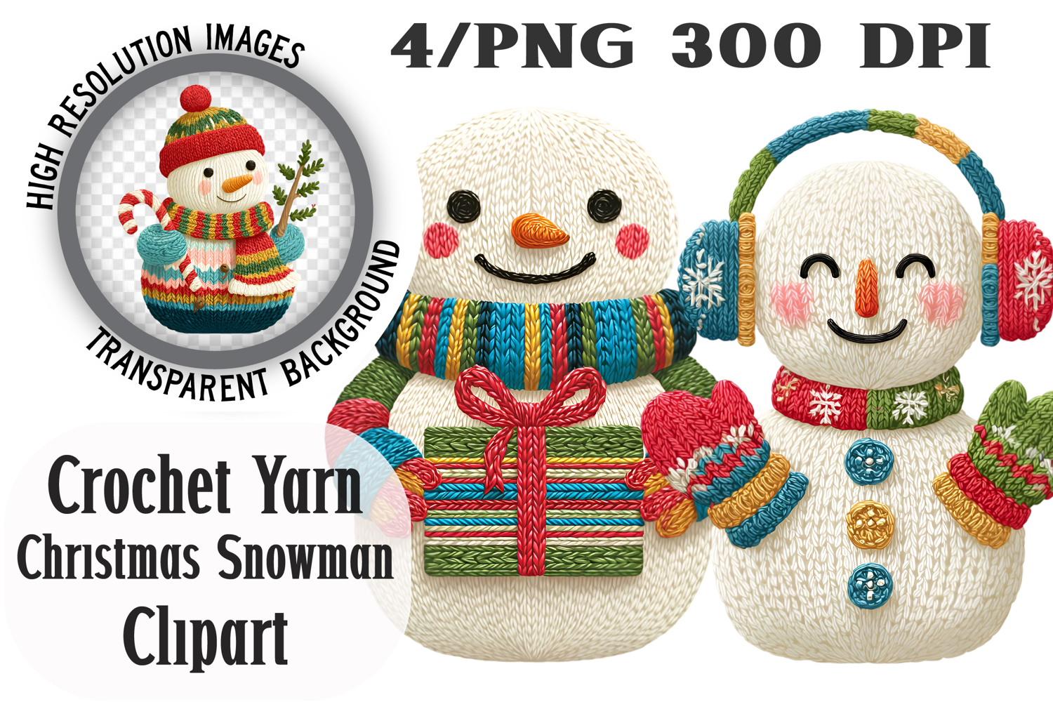 Crochet Yarn Christmas Snowman Clipart example image 1