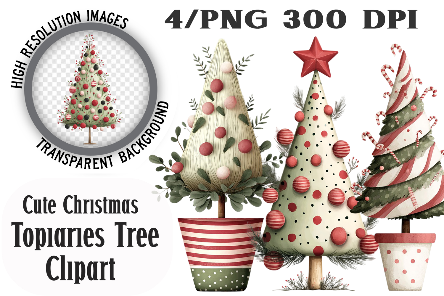 Cute Christmas Topiaries Tree Sublimation example image 1