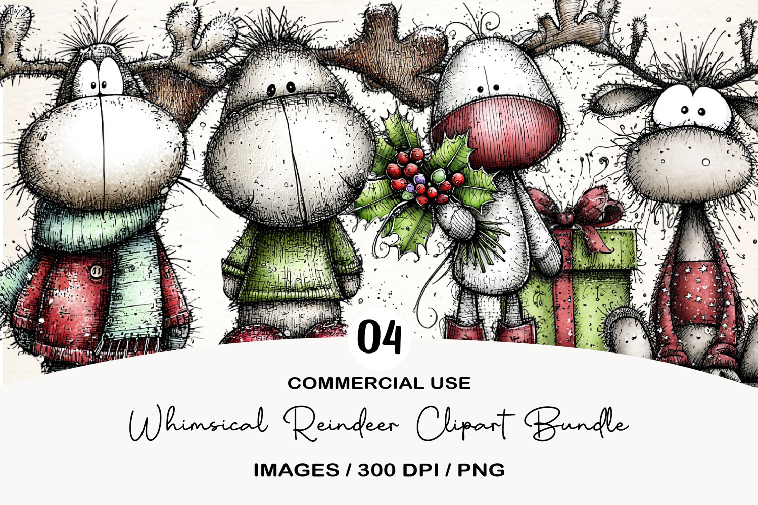 Whimsical Reindeer Clipart Sublimation