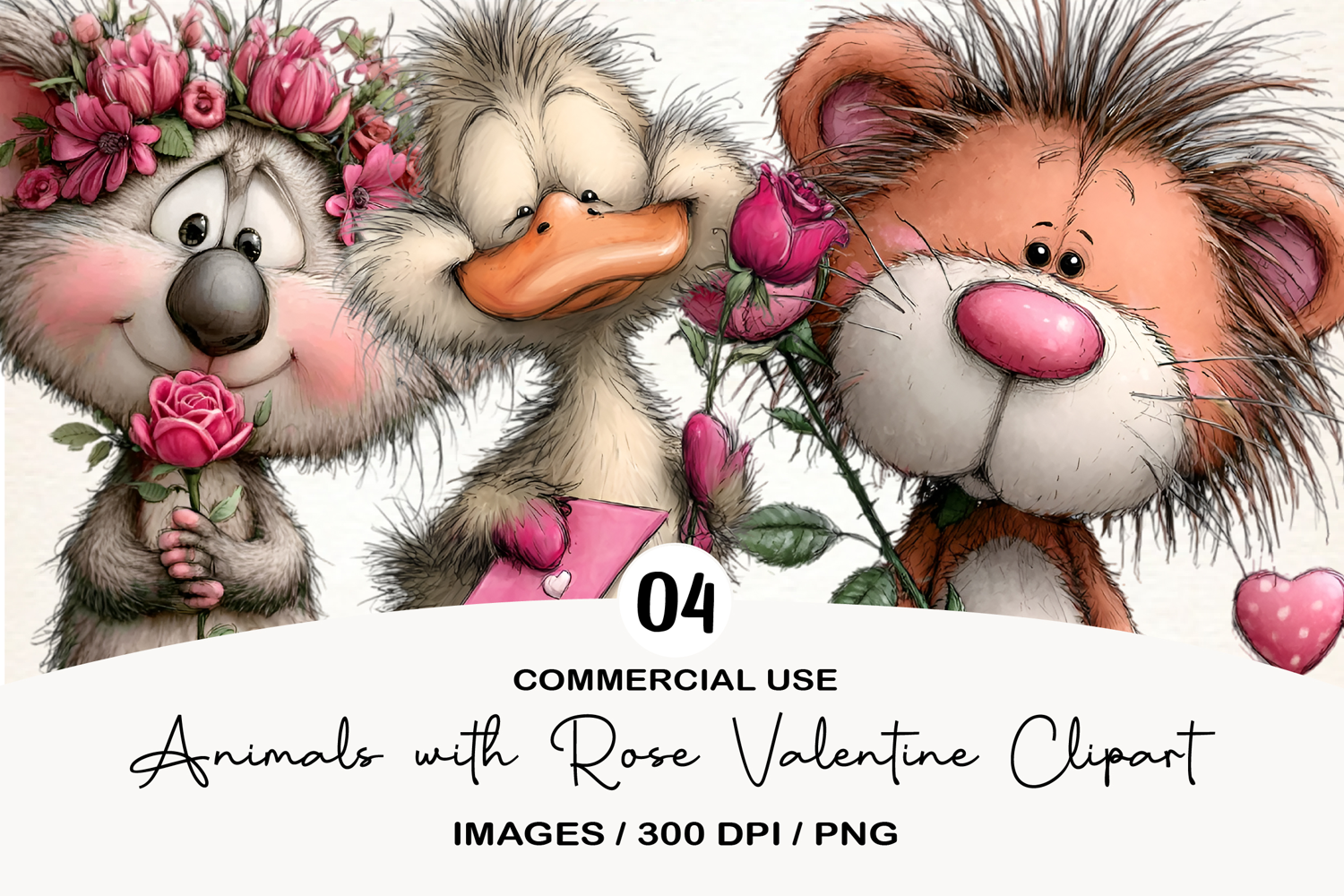Animals with Rose Valentine Clipart example image 1