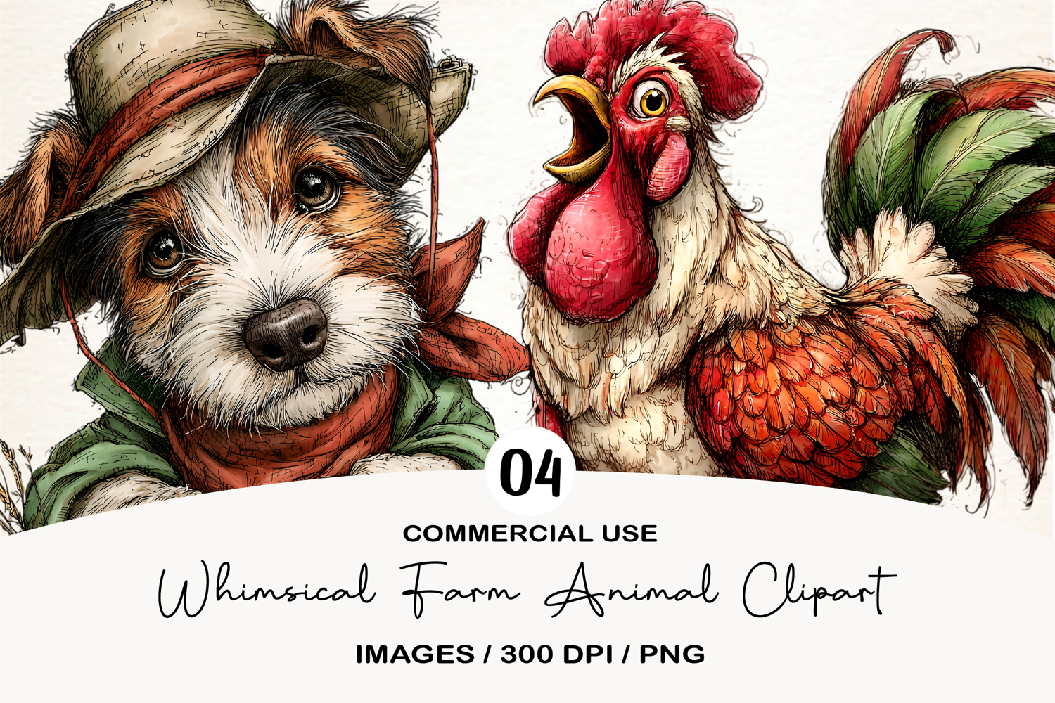 Whimsical Farm Animal Clipart Sublimation example image 1