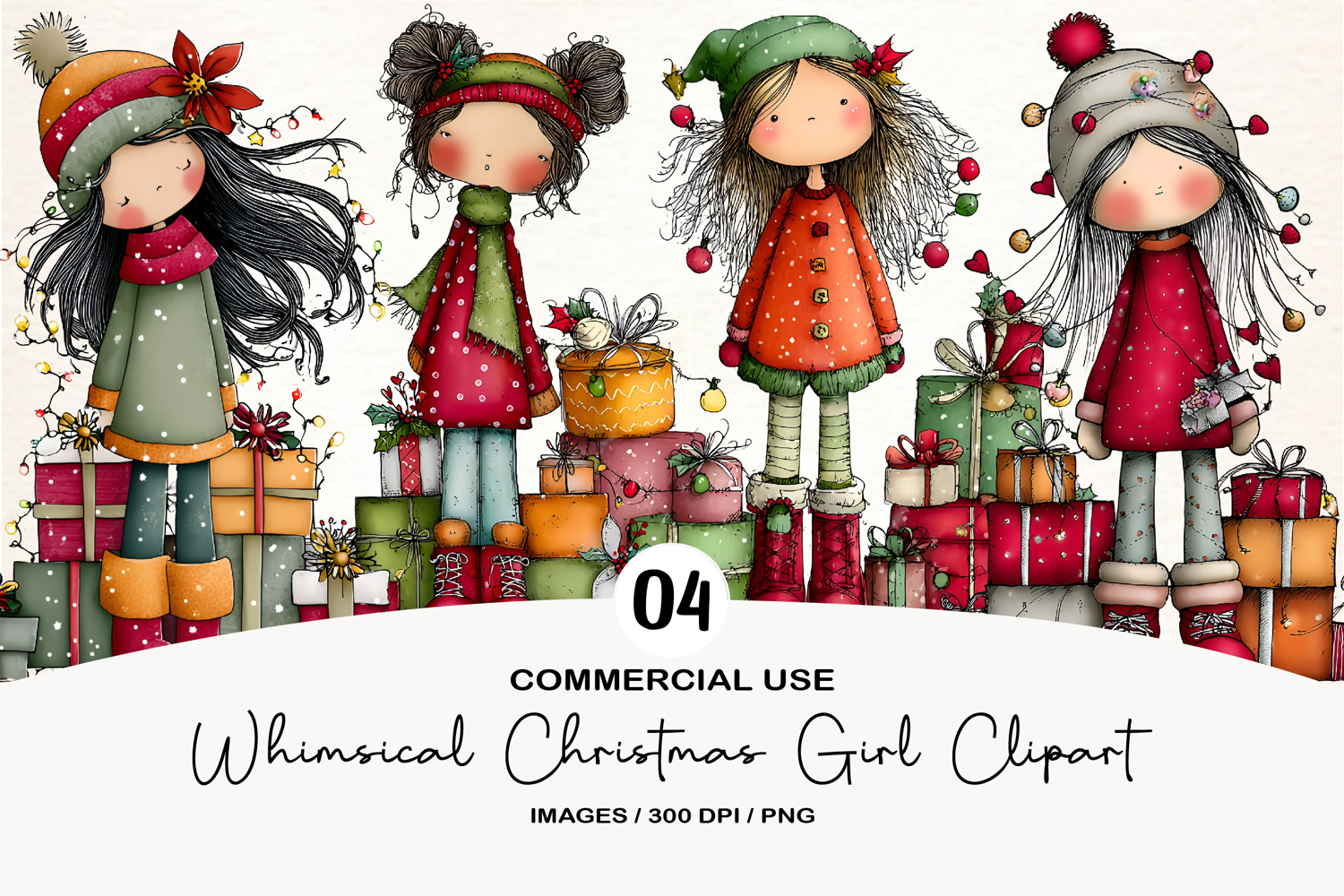 Similar Design Products to Whimsical Christmas Girl Clipart