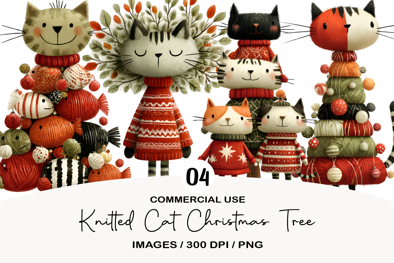 Similar Design Products to Knitted Cat Christmas Tree Clipart
