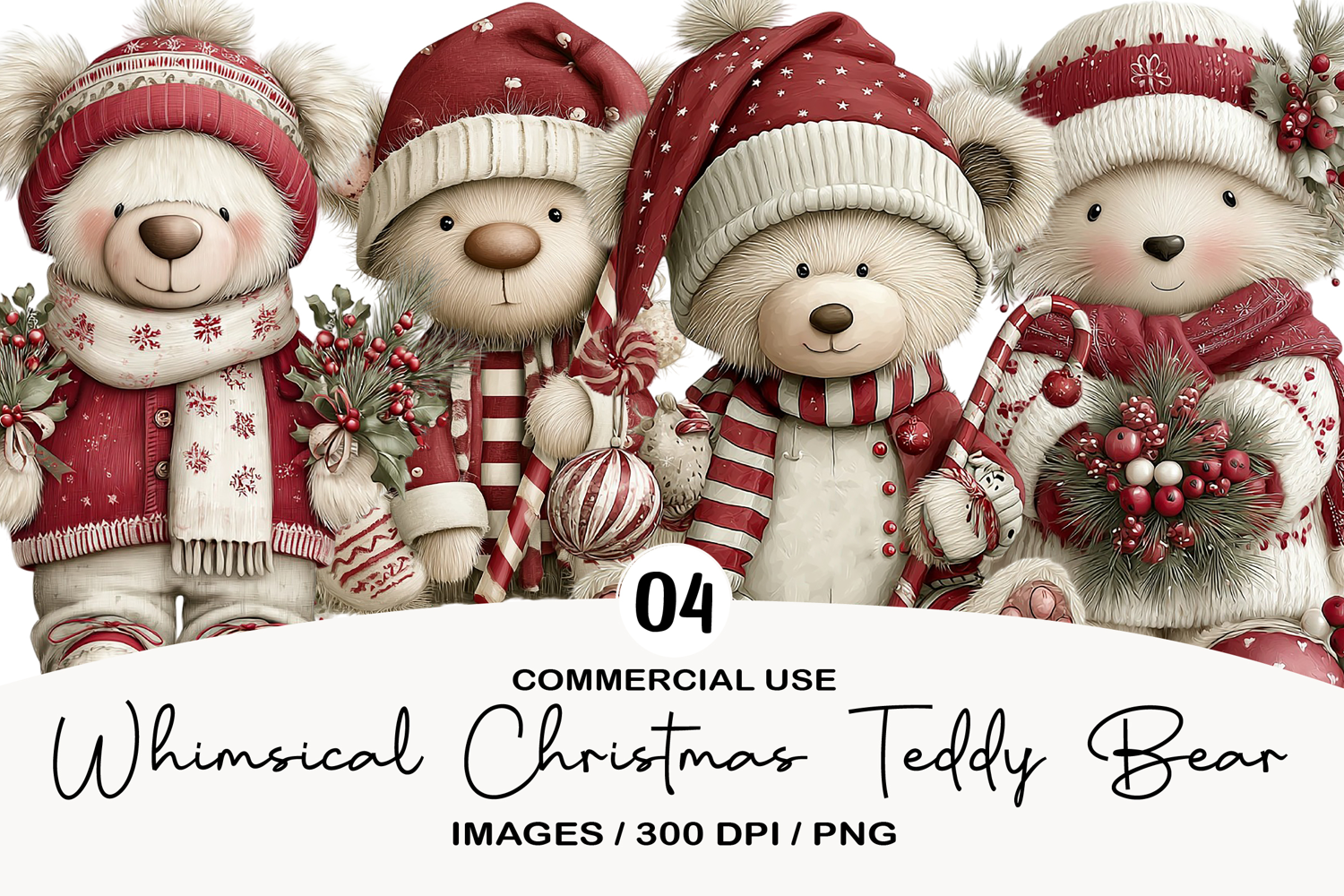Whimsical Christmas Teddy Bear Clipart example image 1