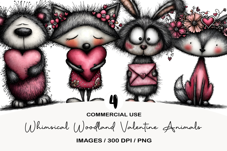 Similar Design Products to Whimsical Woodland Valentine Animals Clipart