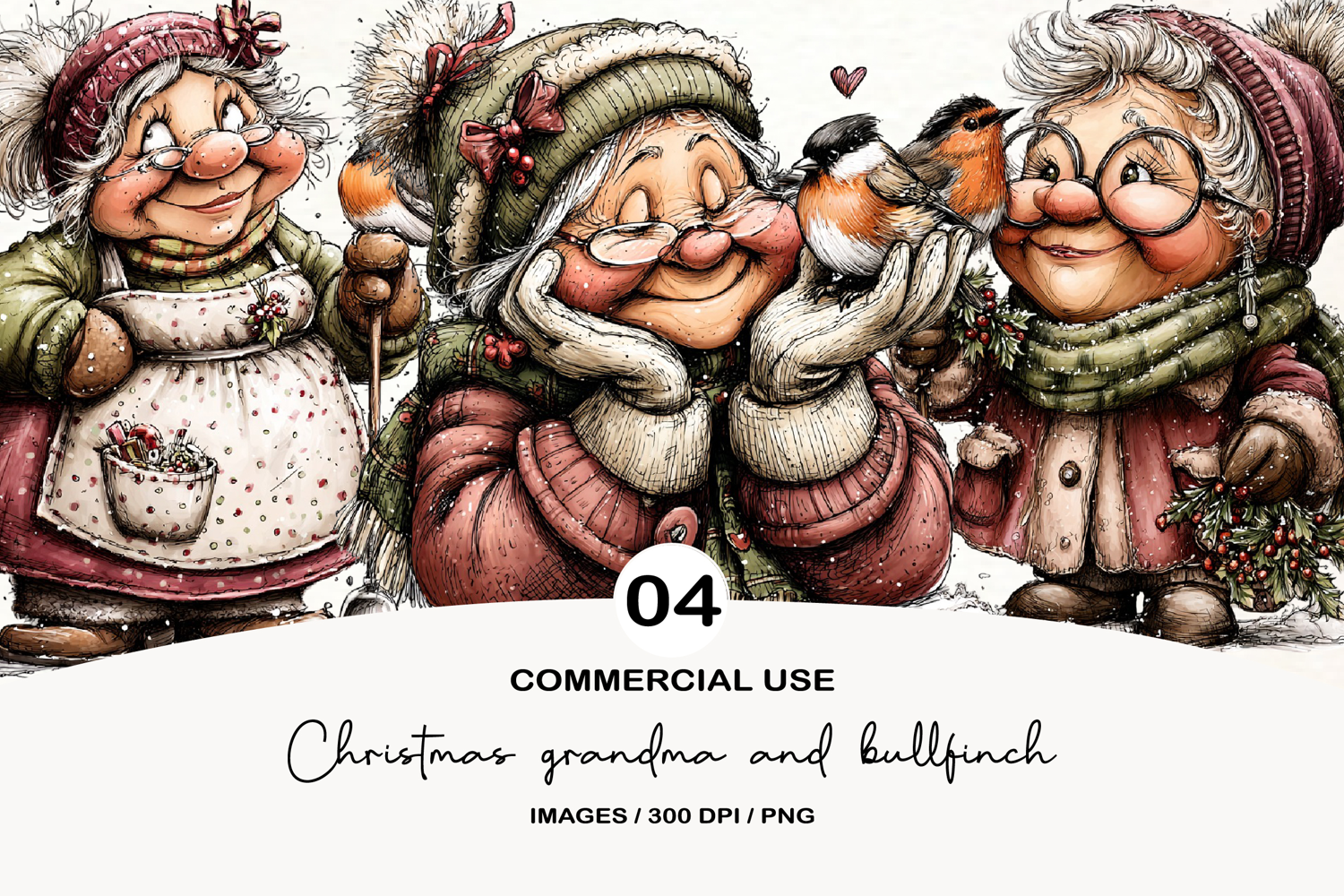 Clipart Holiday Clipart Clipart Png Christmas Sublimation Sublimation Design Sublimation Png Printing File Animals Sublimation Whimsical Christmas Clipart Christmas Grandma And Bullfinch Sublimation