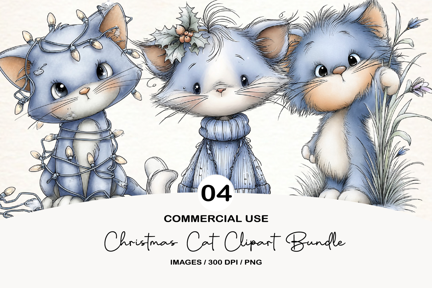 Christmas Cat Clipart PNG Sublimation example image 1