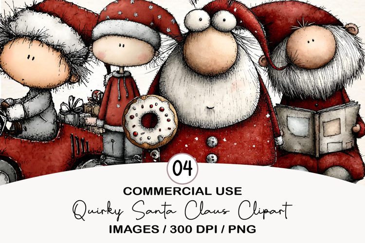 Quirky Santa Claus Clipart Sublimation example image 1