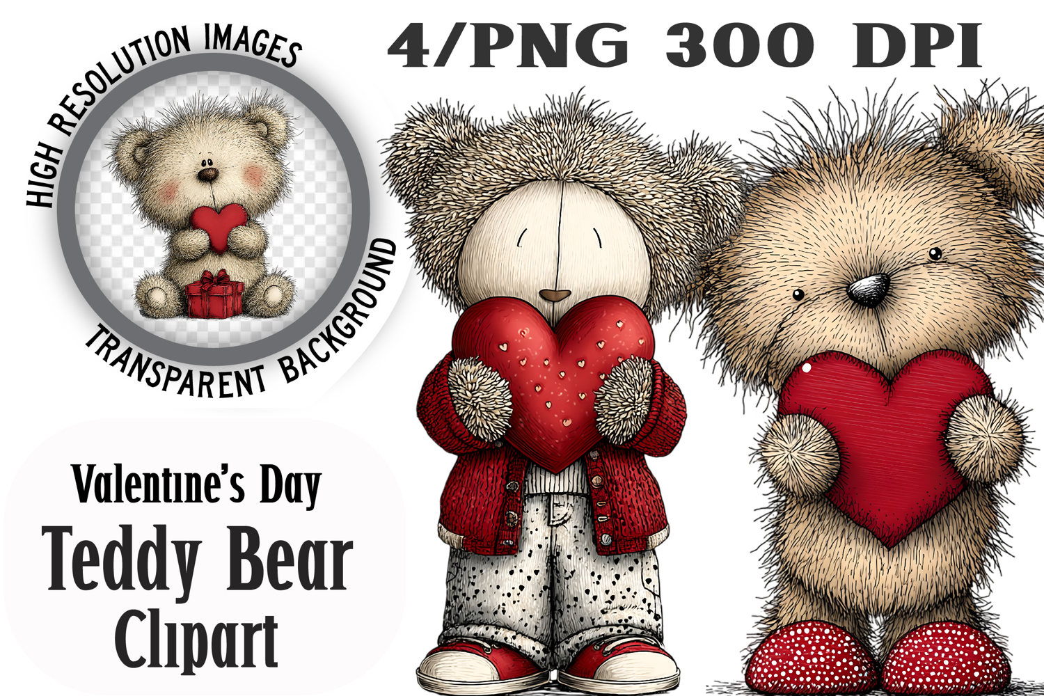 Valentine s Day Teddy Bear with Red Heart Clipart example image 1