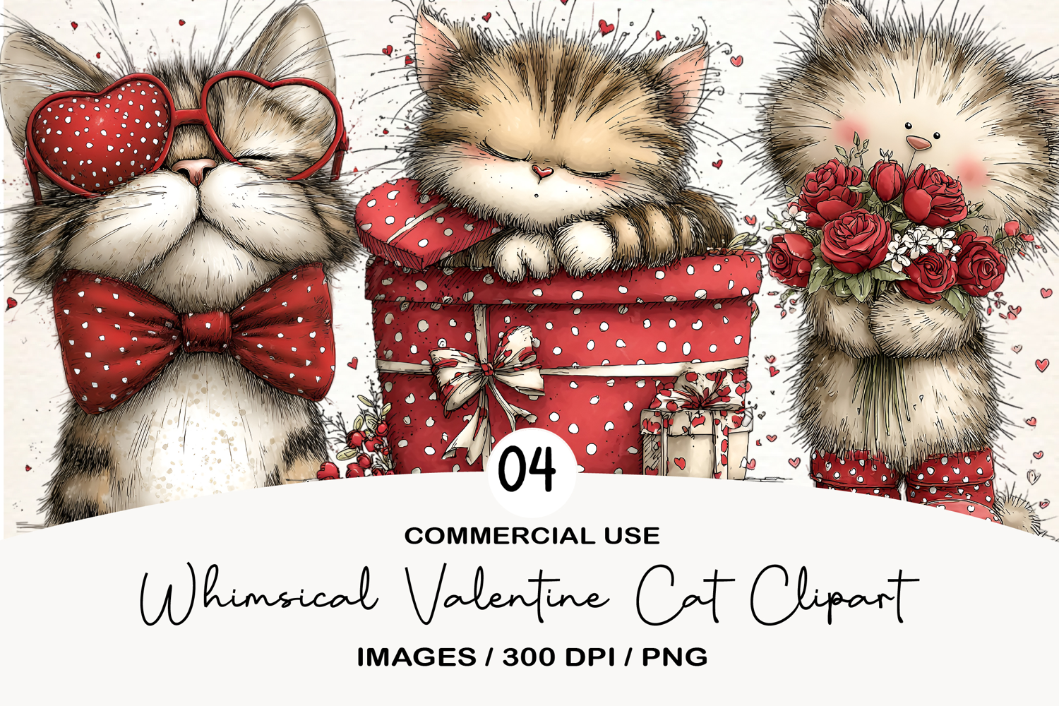 Whimsical Valentine Cat Clipart example image 1