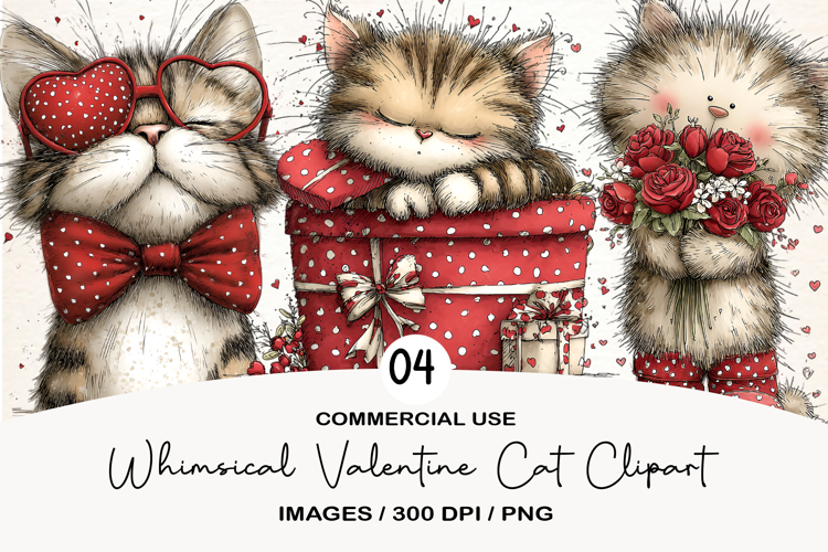 Whimsical Valentine Cat Clipart