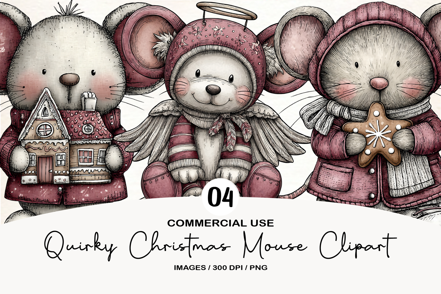 Quirky Christmas Mouse Clipart example image 1