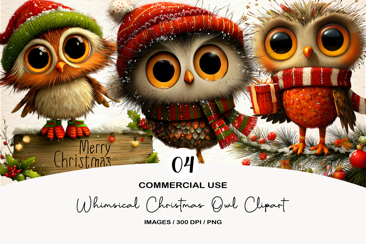 Similar Design Products to Whimsical Christmas Owl Clipart