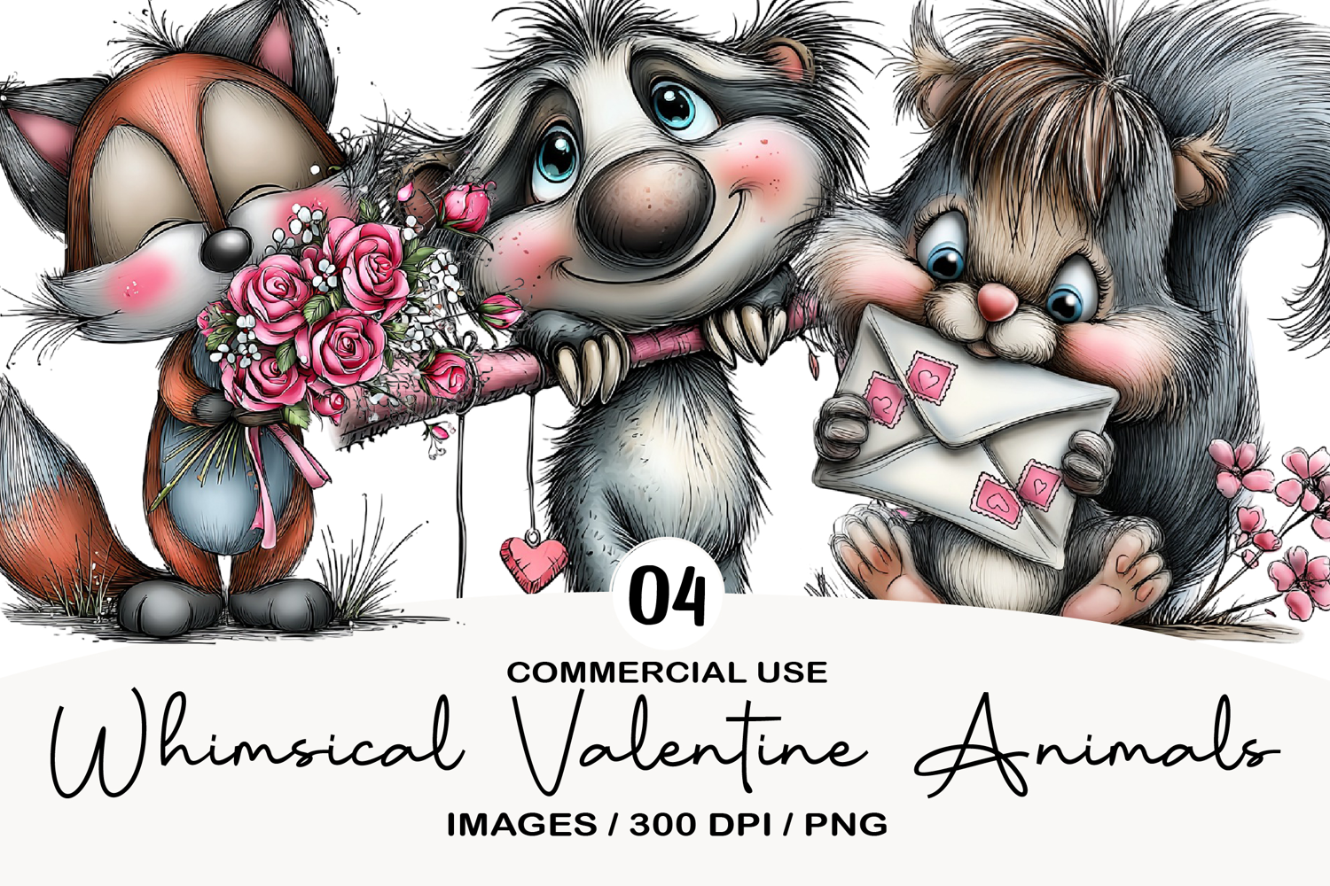 Whimsical Valentine Animals Clipart