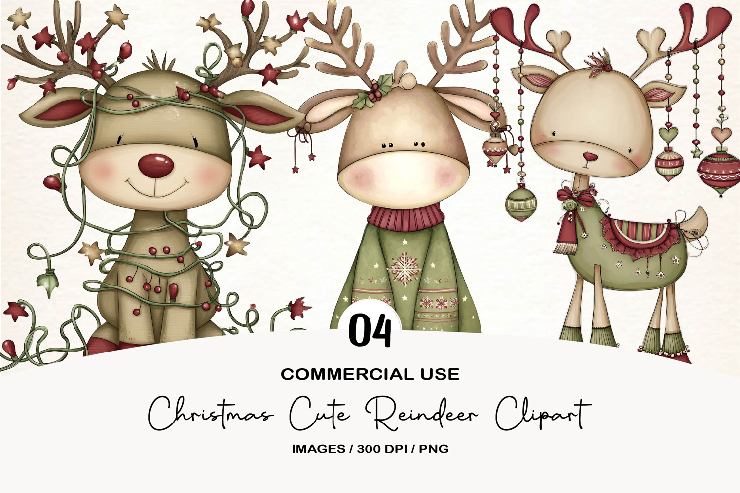 Christmas Cute Reindeer Clipart example image 1