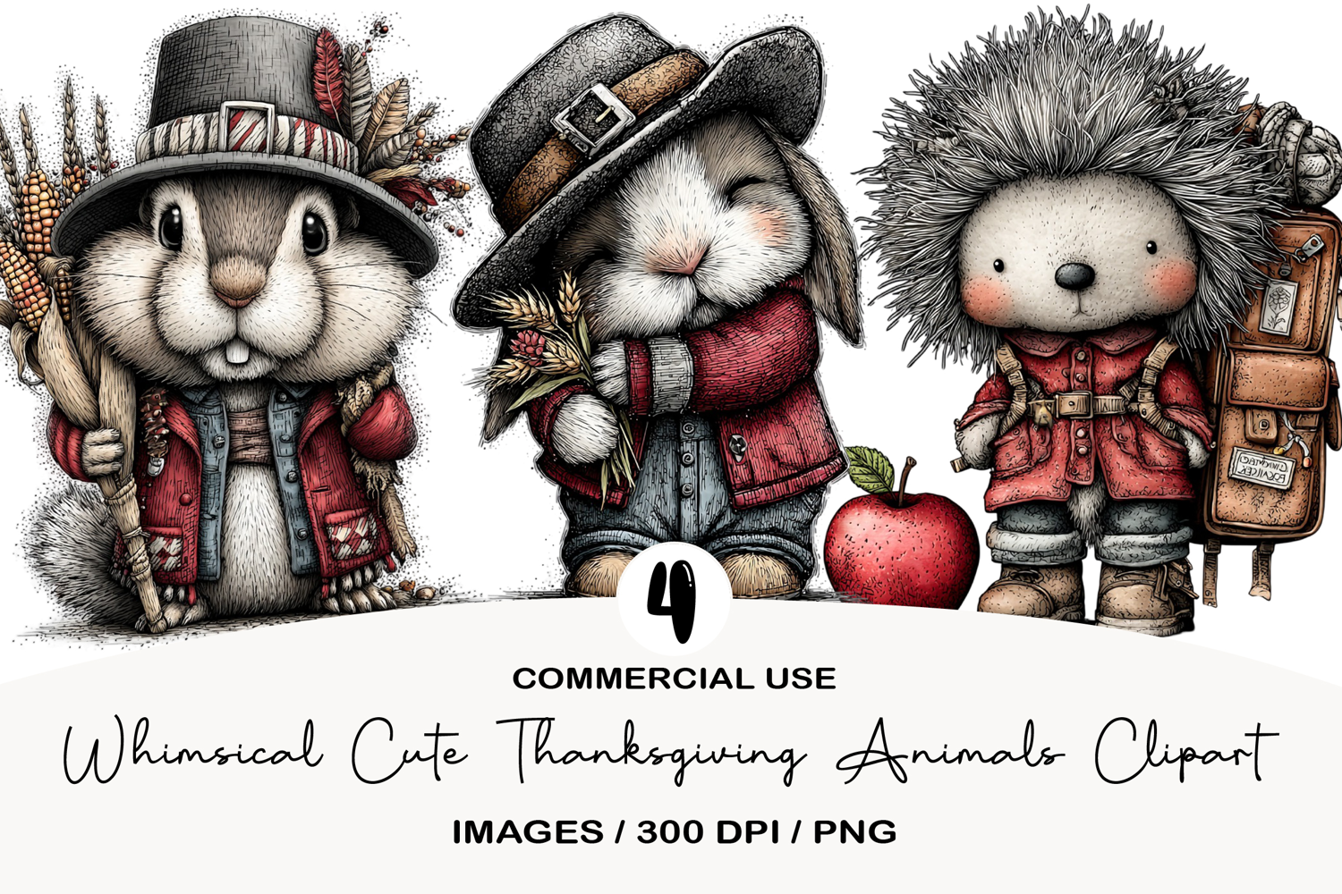 Whimsical Cute Thanksgiving Animals Clipart example image 1