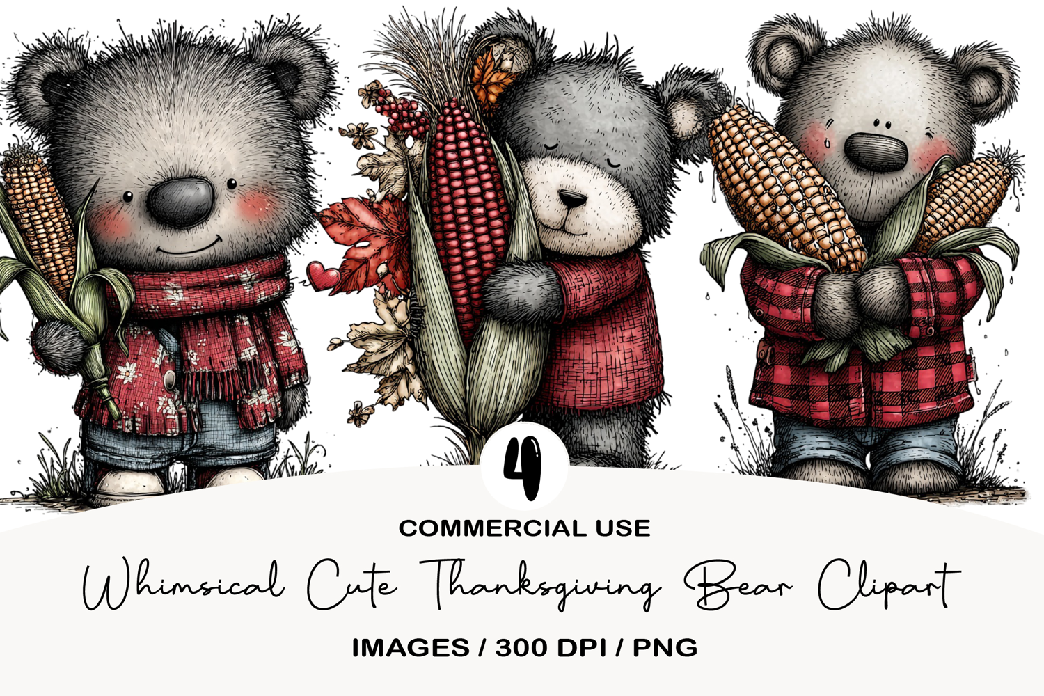 Similar Design Products to Whimsical Cute Thanksgiving Bear Clipart