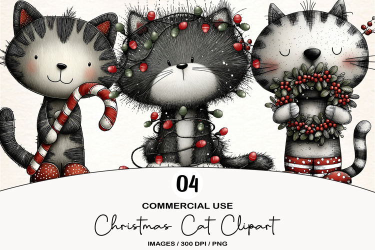 Christmas Cat Clipart Sublimation example image 1