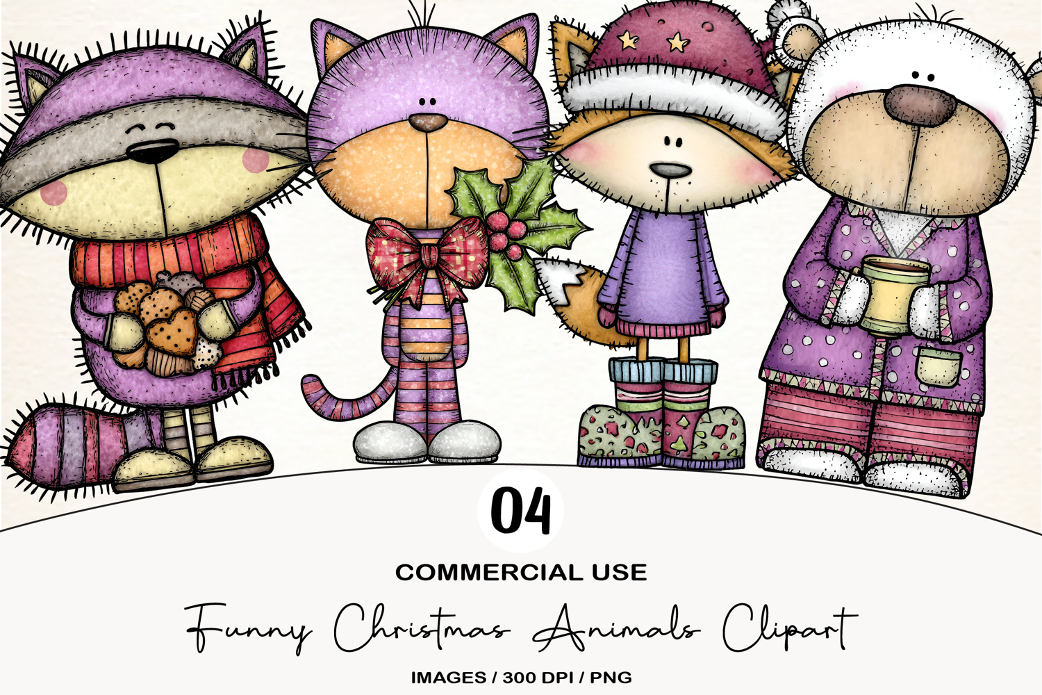 Funny Christmas Animals Clipart example image 1