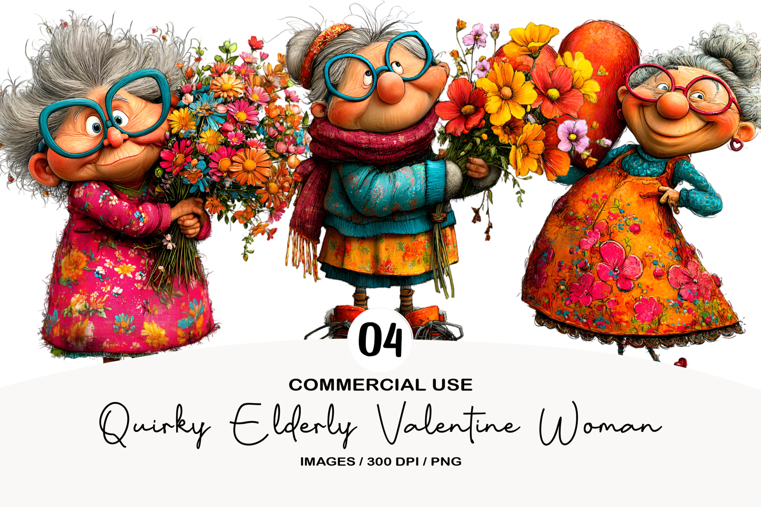 Quirky Elderly Valentine Woman Clipart example image 1