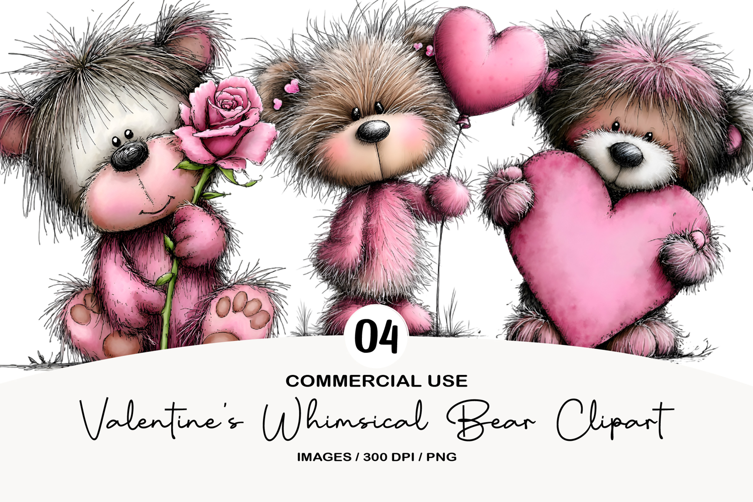 Valentine's Whimsical Bear Clipart example image 1