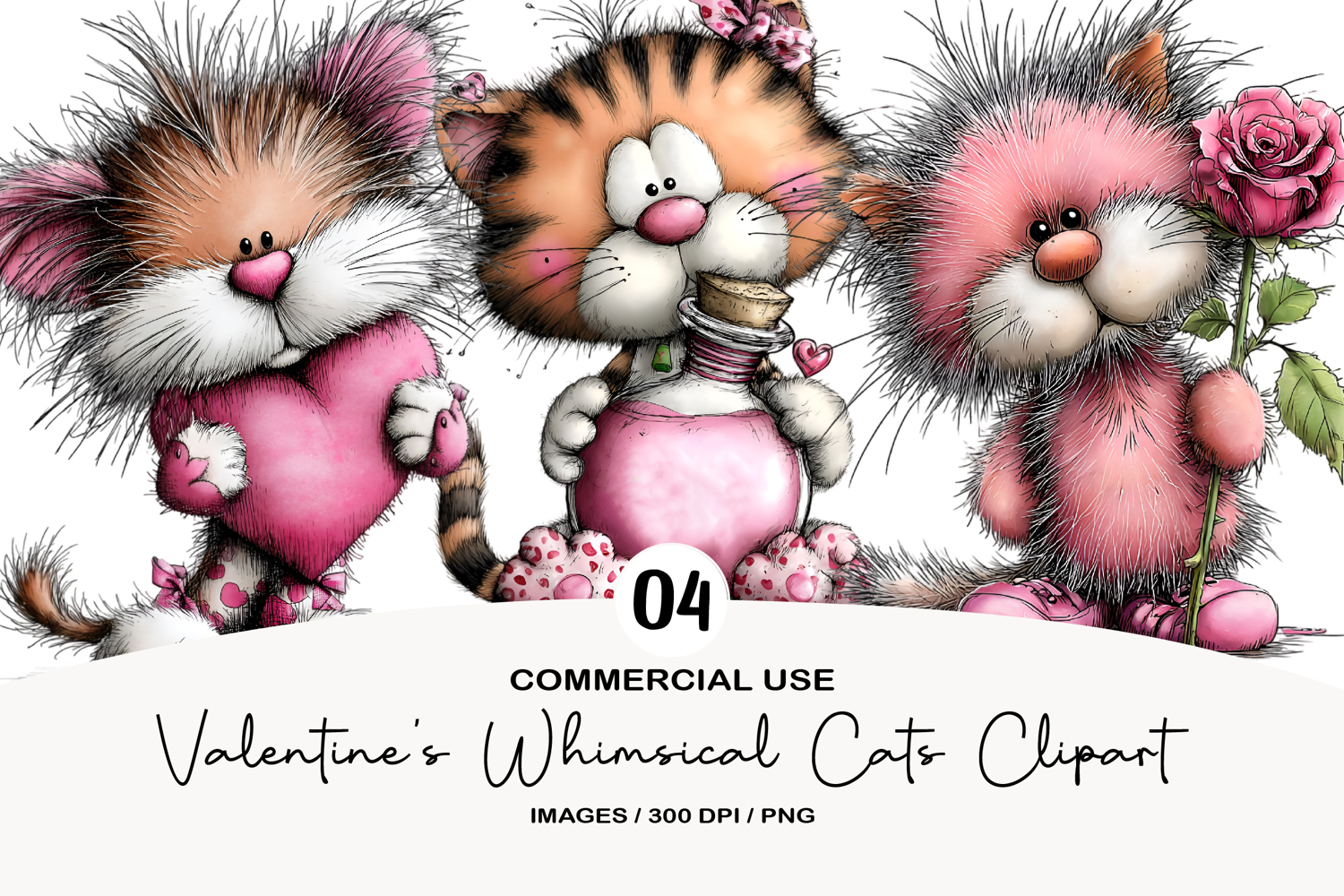 Similar Design Products to Valentine's Whimsical Cats Clipart