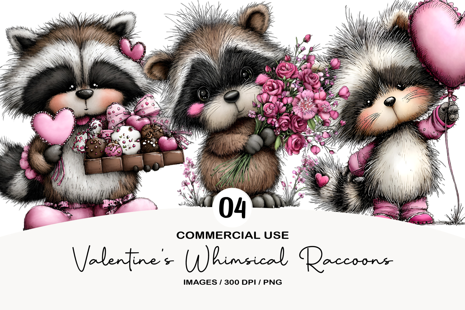 Similar Design Products to Valentine's Whimsical Raccoon Clipart