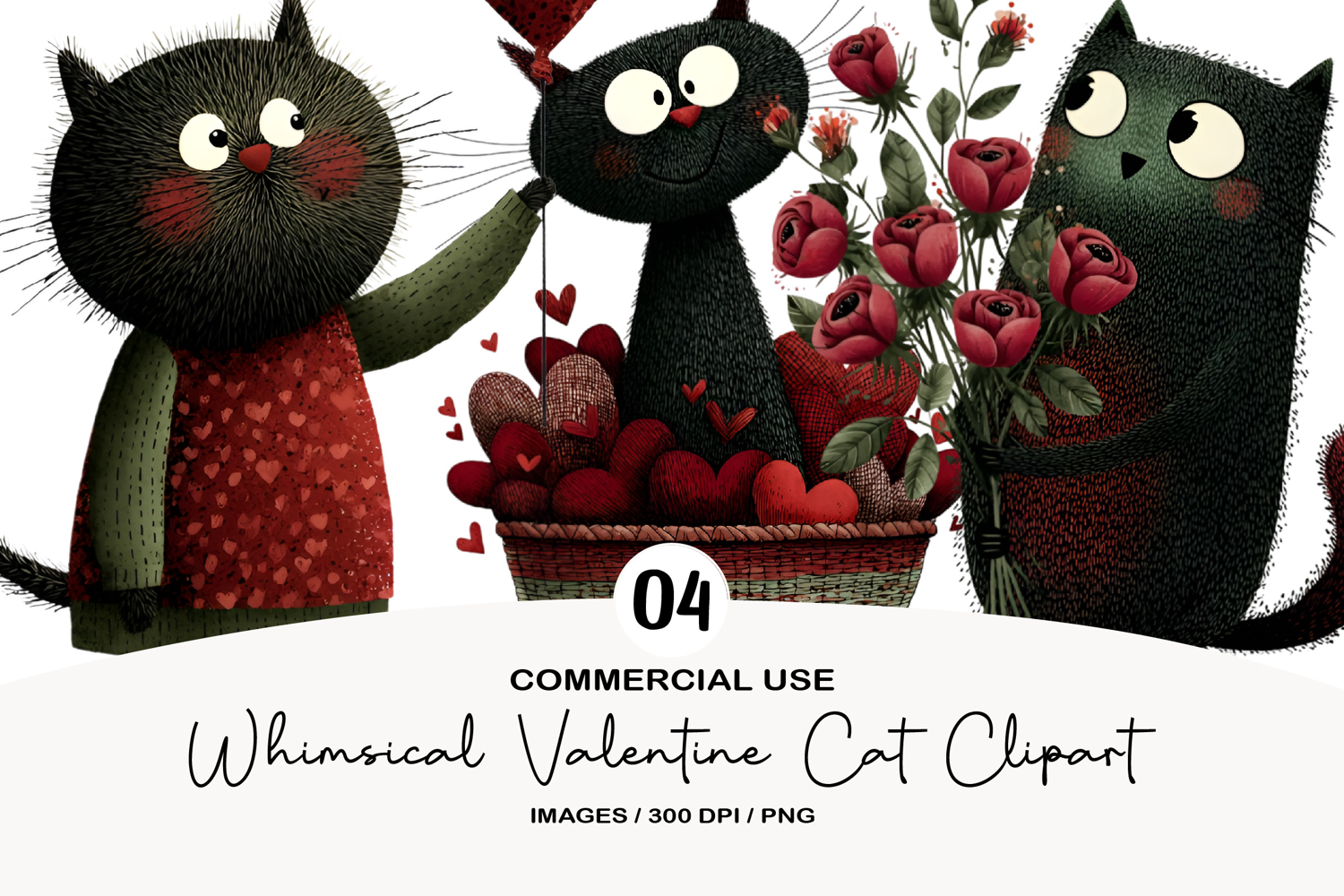 Similar Design Products to Whimsical Valentine Cat Clipart