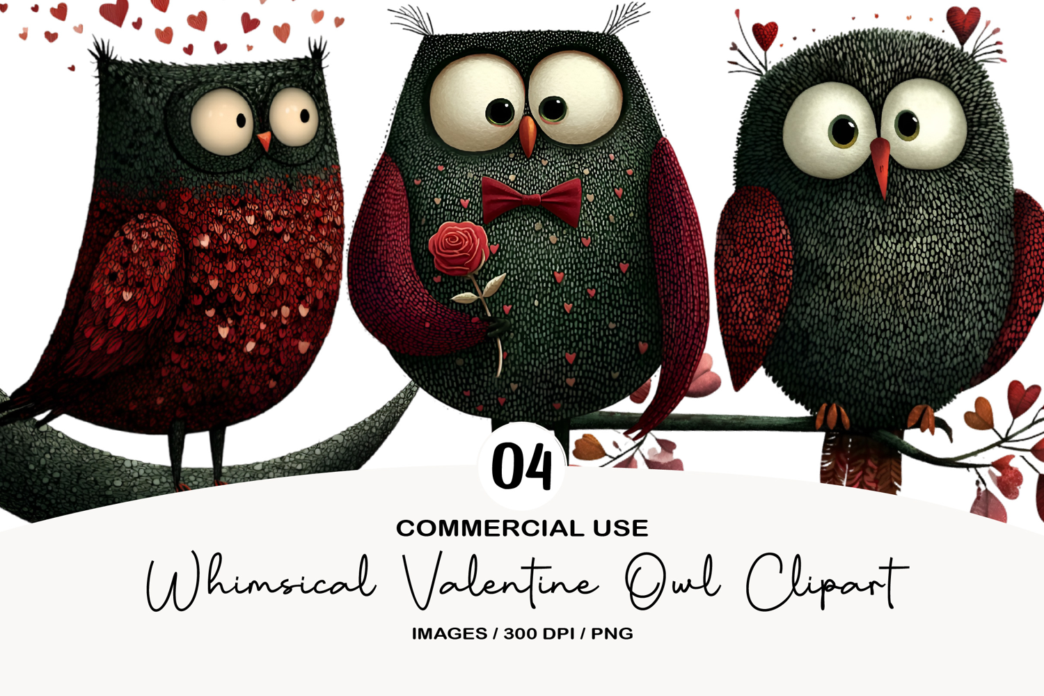 Similar Design Products to Whimsical Valentine Owl Clipart